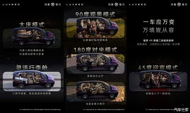 [汽车之家资讯]3月31日,咱们从智界品牌官方了解到,旗下全新中大型MPV——智界V9将提供三款内饰配色,区分为绒霞紫、韶华杏、赤茶橘供袭取。同期,算作鸿蒙智行首款旗舰MPV,智界V9将搭载二排旋转座椅,满足商务理睬、全家出行等多种场景化需求。