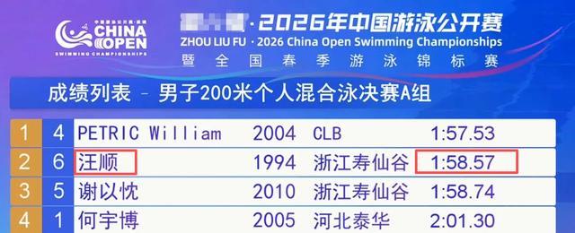 27岁的汪顺,在男人200米个东谈主羼杂泳决赛里,游出了1分55秒00的收货。