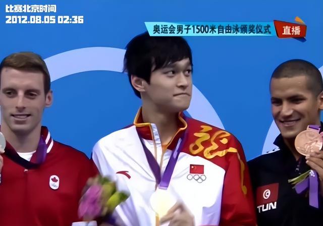 看着同组的老苍老孙杨站上最高领奖台。