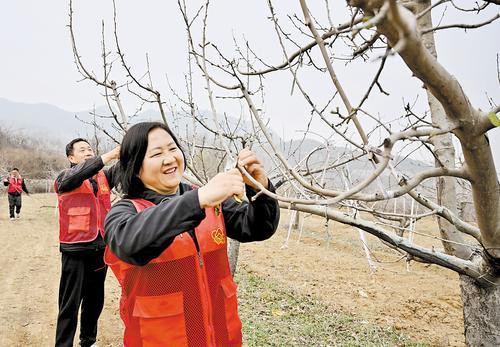3月23日,信宝颖(右)在石家庄市鹿泉区992民众帮公益果园修剪果树。本报记者史晟全摄