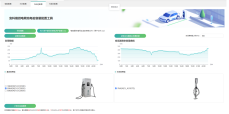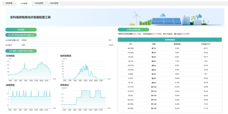 软件基于当地光照资源与园区负荷历史用电情况,自动推选最优装机容量,评估自愿私用比例与发电收益。