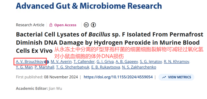 布鲁奇科夫团队自后围绕这种陈腐菌株作念过一系列推敲。关连推敲论文暴露,在小鼠模子中,这类来自冻土的芽孢杆菌F株曾推崇出改善机体气象、延伸命命的迹象;而在更新的2024年论文里,推敲者又讲述称,芽孢杆菌F株的细胞裂解物在离体小鼠白细胞践诺中,能彰着收缩过氧化氢形成的DNA毁伤,但论文同期也强调,具体机制并不赫然。