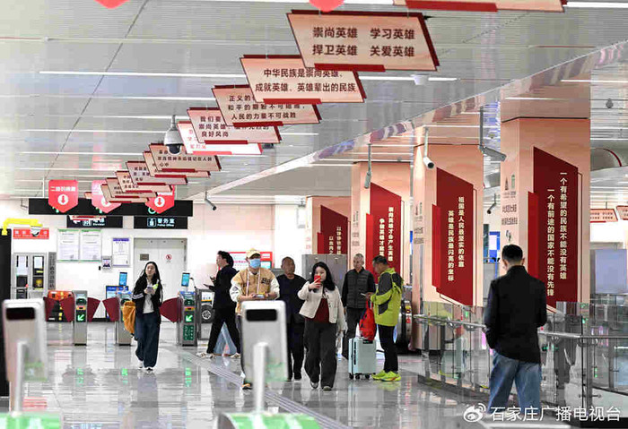 日前,华北军区义士陵寝与石家庄市轨说念交通集团有限包袱公司联袂打造的以“贯注英烈”为主题的义士陵寝地铁站厚爱亮相。这座地铁站将红色文化融入城市人人空间,通过千里浸式展陈、互动式体验和谨慎氛围营造,打造出一个走漏英烈精神、厚植爱国情感的“红色课堂”。