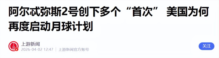 阿尔忒弥斯2号创下多个“初次” 好意思国为何再度开动月球遐想——上游新闻